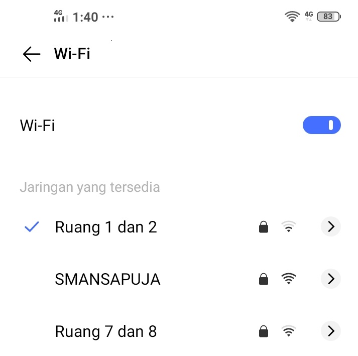 1. Silakan aktifkan wifi handphone, pilihlah jaringan sesuai dengan ruang ujian masing-masing