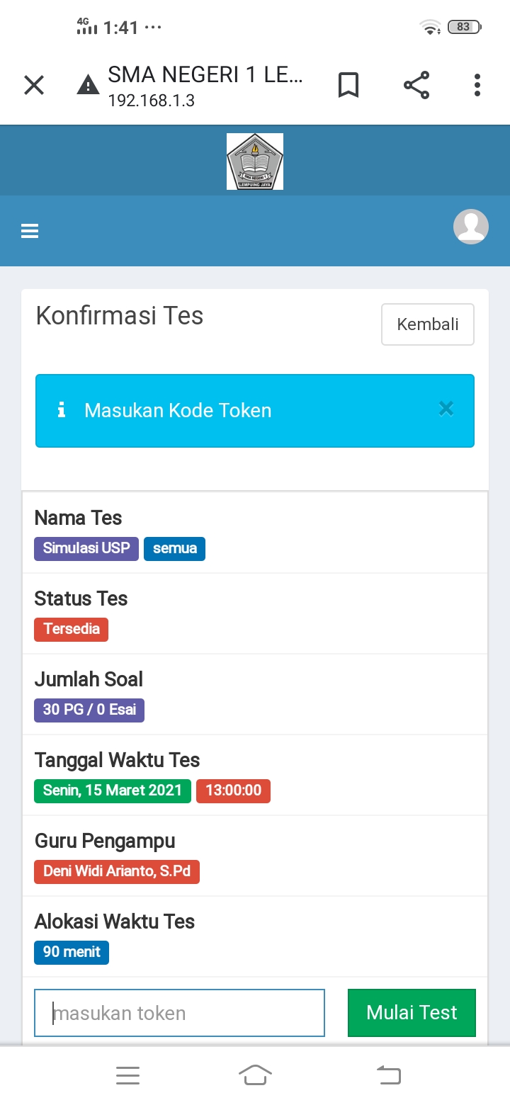 5. Silakan masukkan TOKEN ujian dan klik MULAI TES