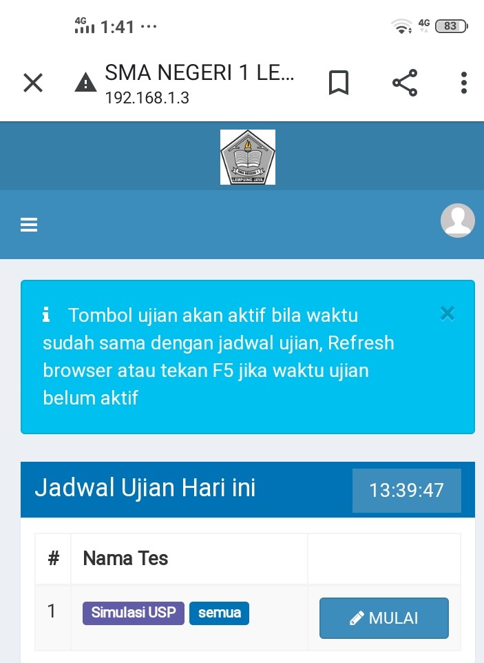 jika belum tampil mata pelajaran ujian silakan di reload, pastikan tampilan di dashboard sesuai dengan identitas,